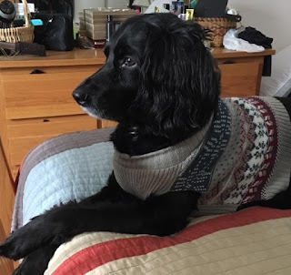 Yes, this is Shadow, our dear pupper. He is sitting on the bed, my elder daughter nearby, snapping pictures of him and texting them to me. He is anxiously awaiting my arrival in these pictures, gazing out the window in hopes of a glimpse of his dearly beloved mommy. Seriously, NOBODY loves me like this dog does. She reported that he wouldn't give her any attention, so intent was he on watching for me to get home. #theycallitpuppylove